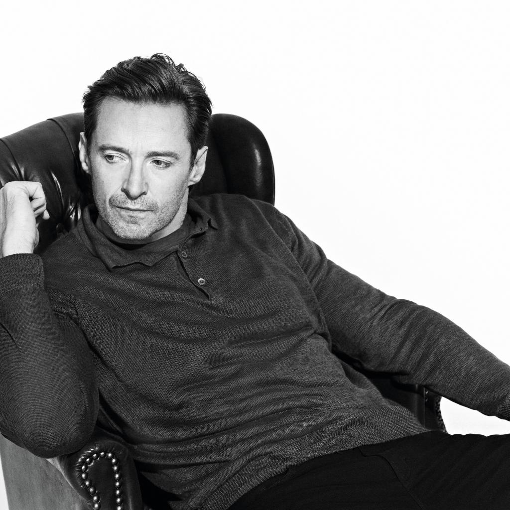Wallpaper Actor Hugh Jackman in the chair black and white photo