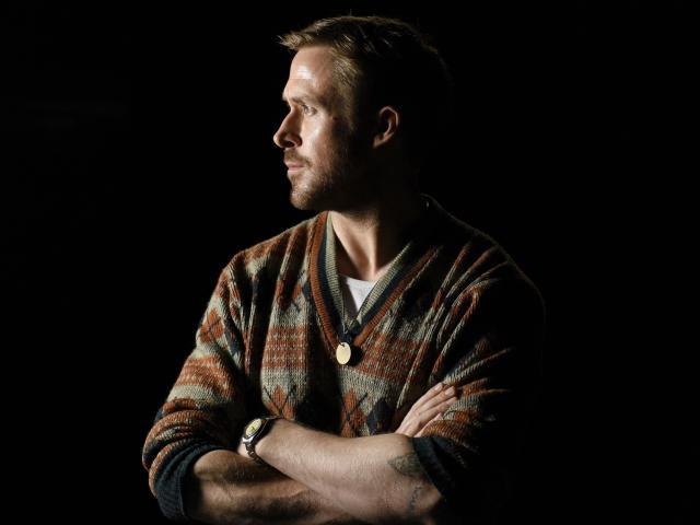 Wallpaper Actor Ryan Gosling in a sweater on a black background