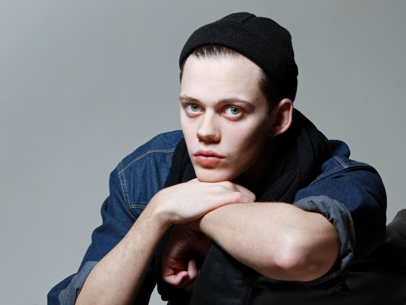 Wallpaper Young actor Bill Skarsgård in a black hat