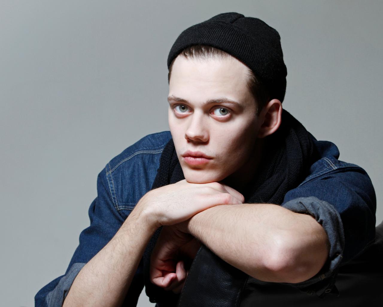 Wallpaper Young actor Bill Skarsgård in a black hat