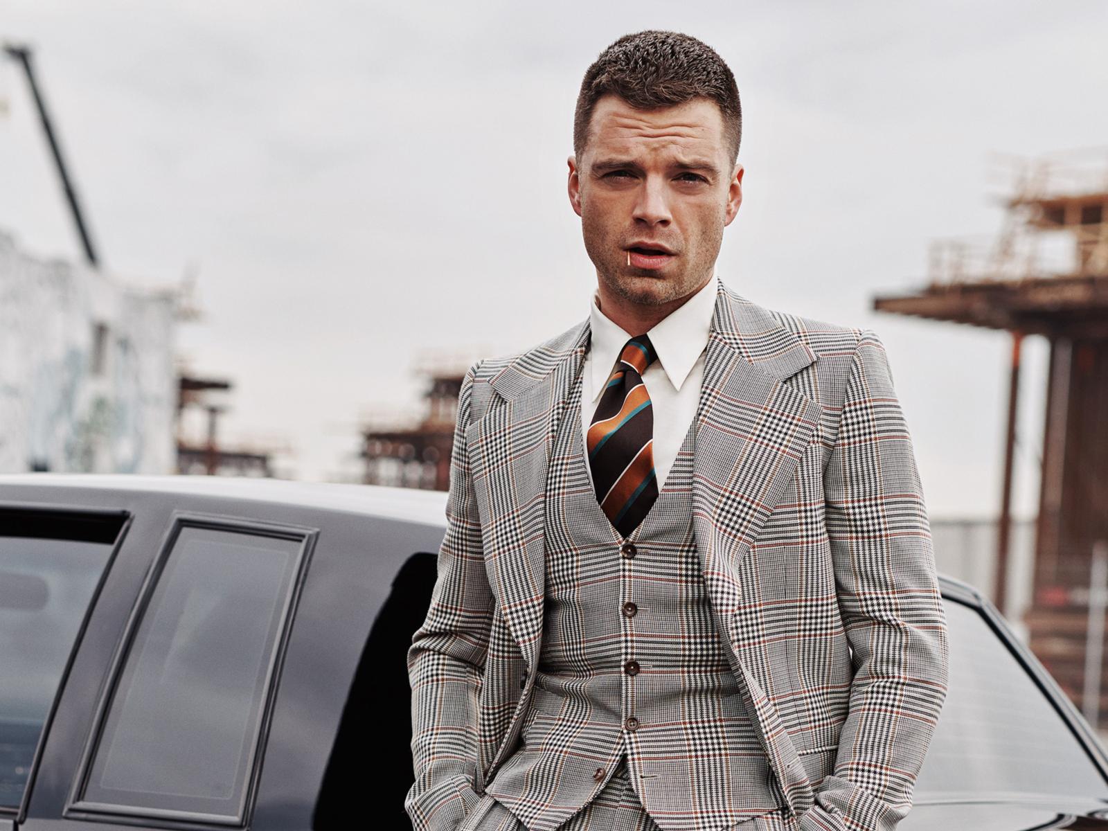 Wallpaper Stylish man, actor Sebastian Stan in a suit