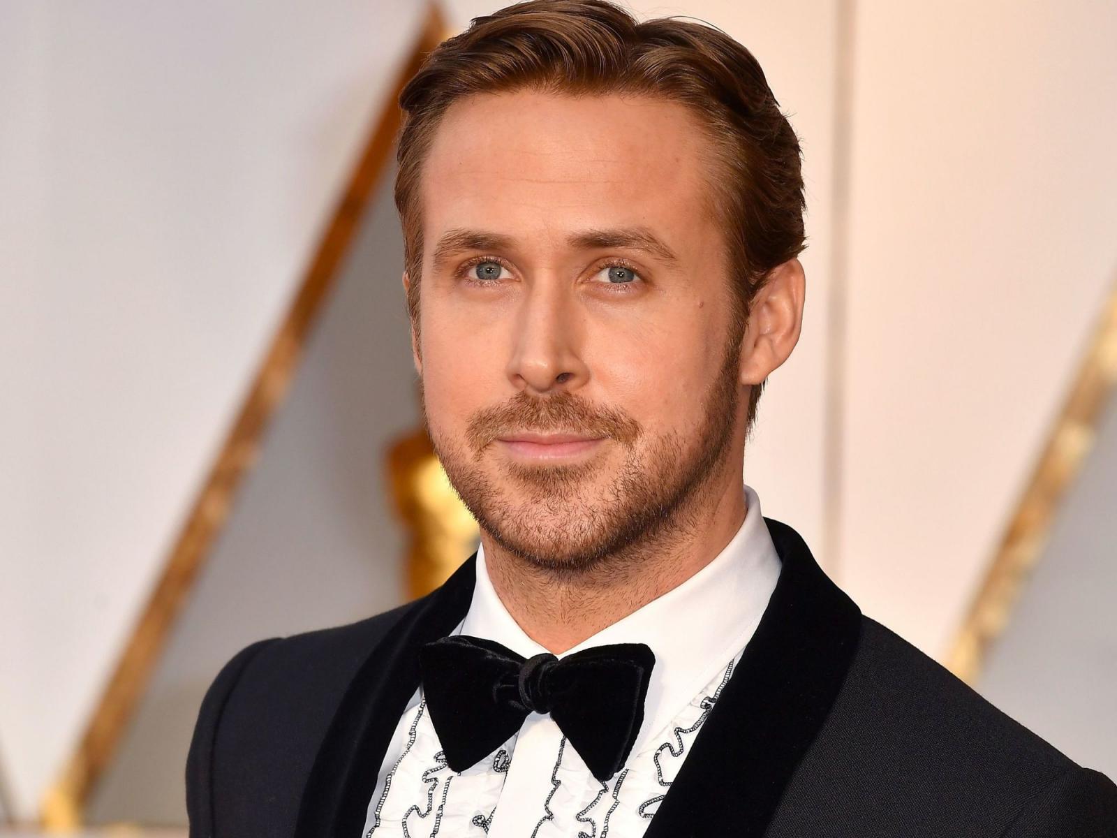 Wallpaper Actor Ryan Gosling in a suit with a black bow tie