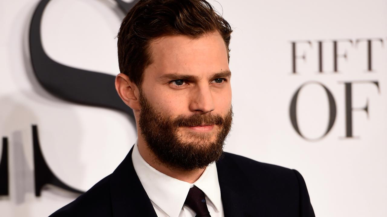 Wallpaper Actor Jamie Dornan in a white shirt on a brown background
