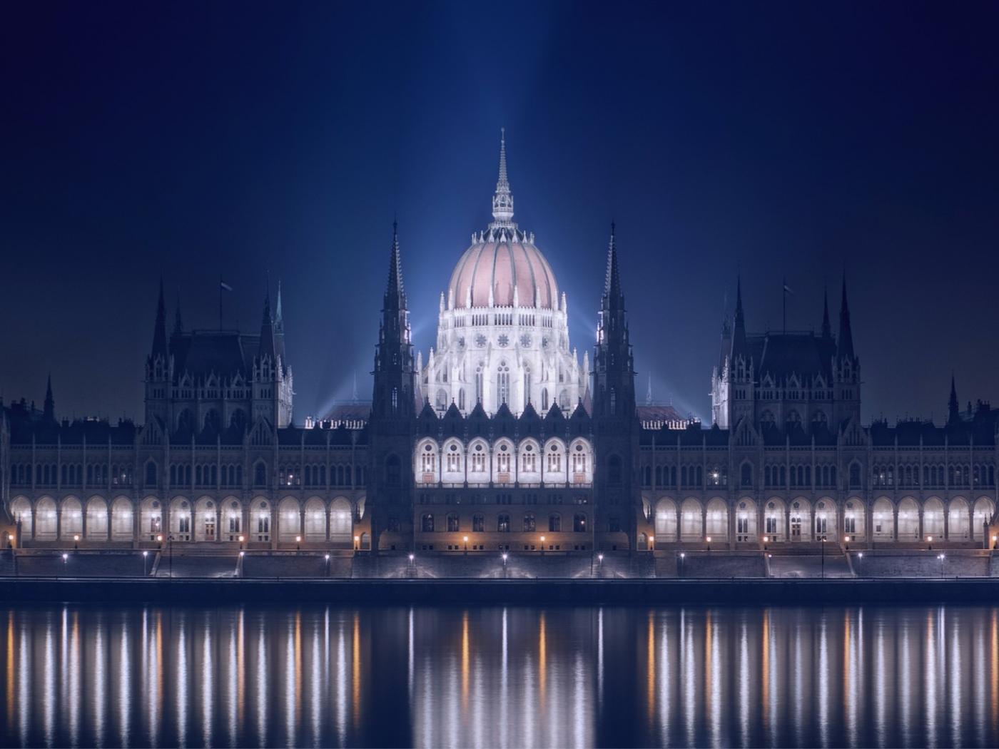 Wallpaper Night lights of a building in Budapest, Hungary
