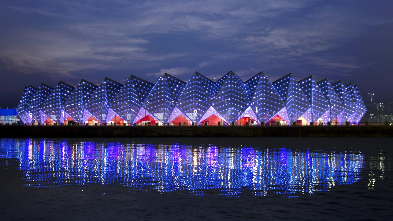 Wallpaper Baku Crystal Hall is reflected in the water