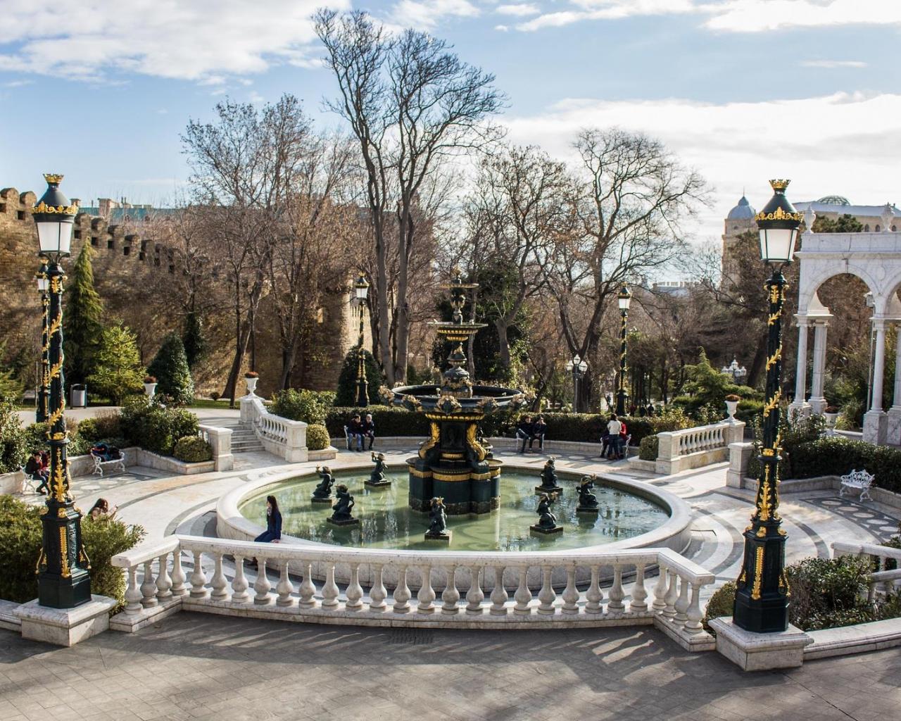 Wallpaper Beautiful fountain in the Governor`s Garden Baku