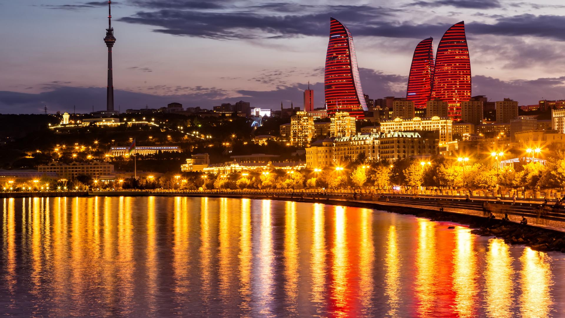 Wallpaper The lights of the evening Baku