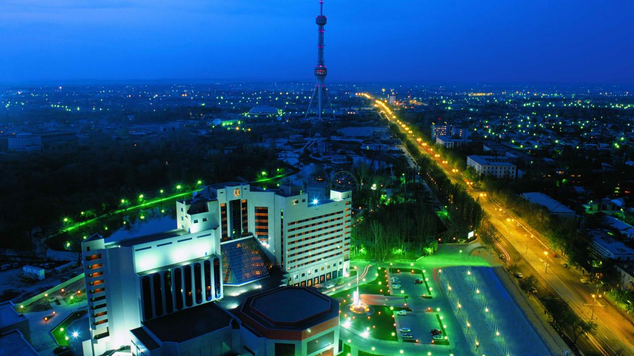 Wallpaper View of Tashkent and Tashkent Tower at dusk