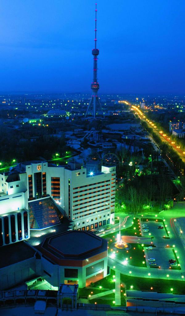Wallpaper View of Tashkent and Tashkent Tower at dusk