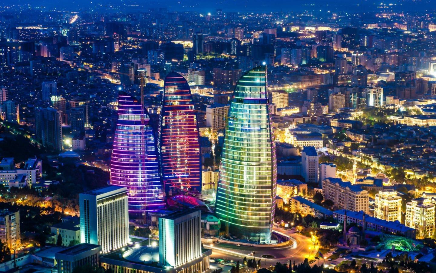 Wallpaper Baku Flame Towers at night