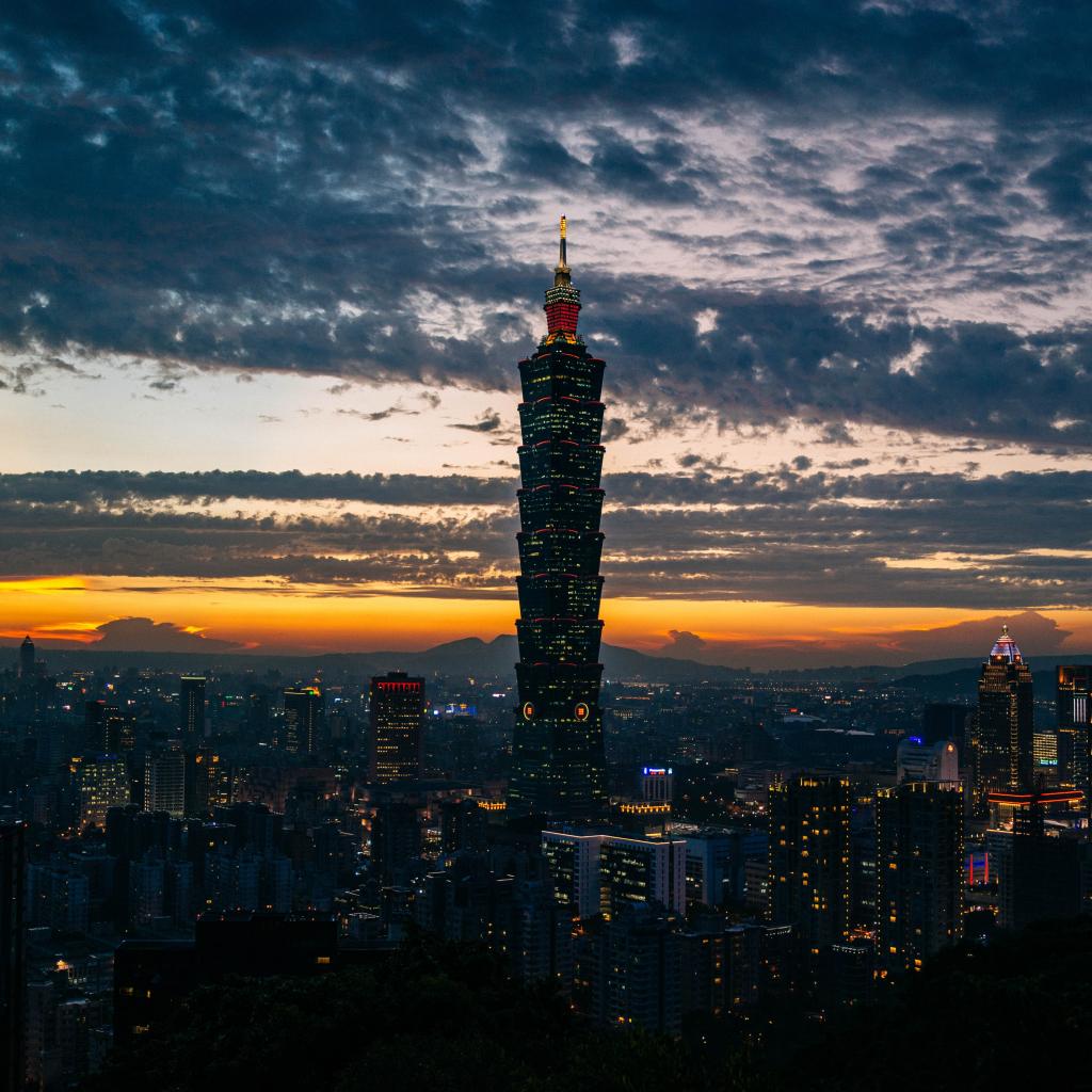 Wallpaper Skyscraper in the night city on the sky background