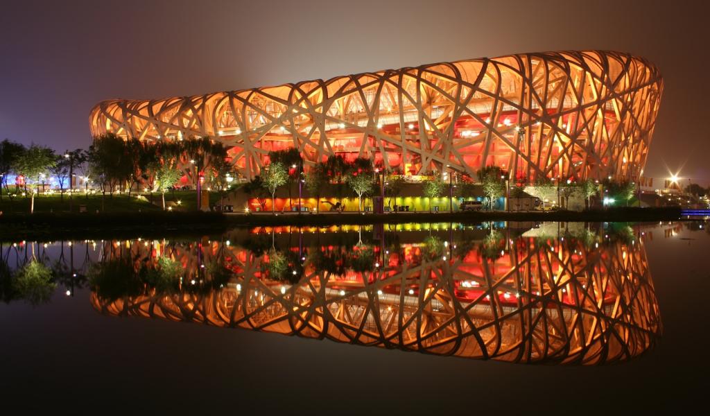 Wallpaper Beijing National Stadium is reflected in the water, PRC