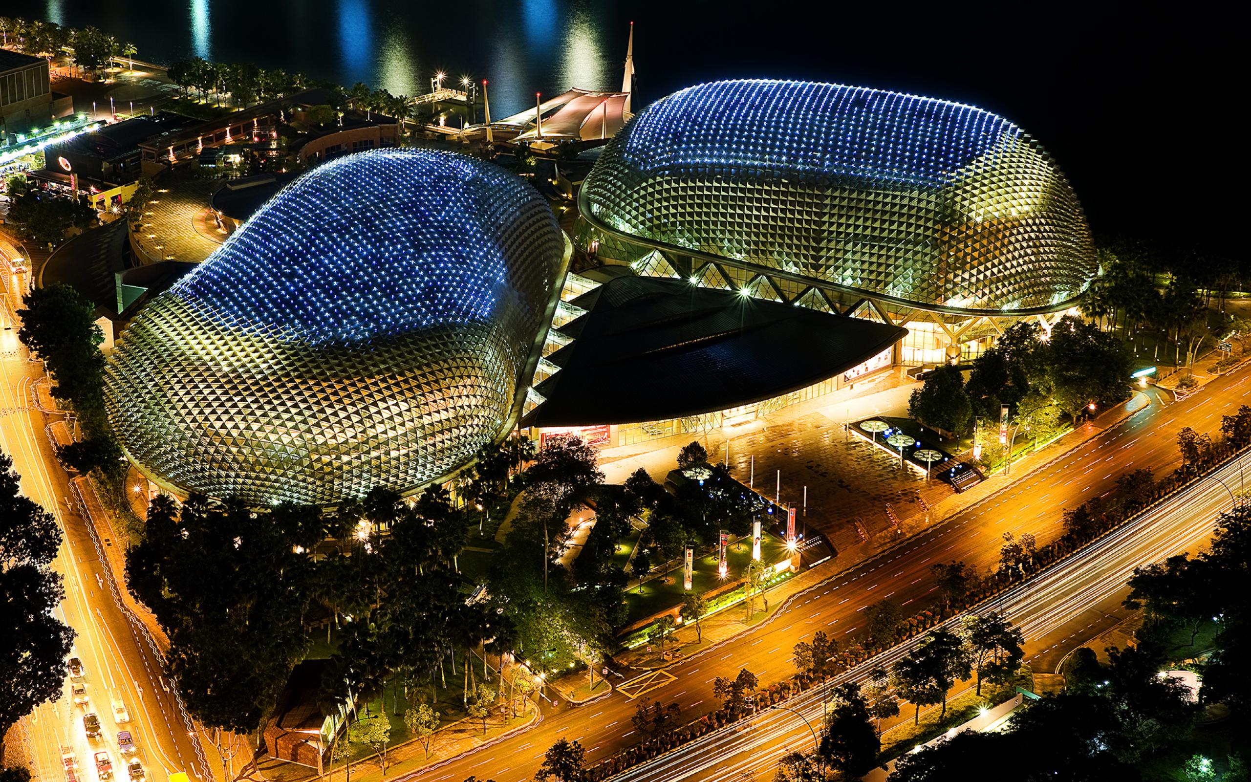 Wallpaper Theater Esplanade at night, Singapore