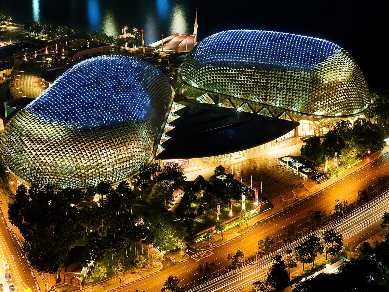 Wallpaper Theater Esplanade at night, Singapore