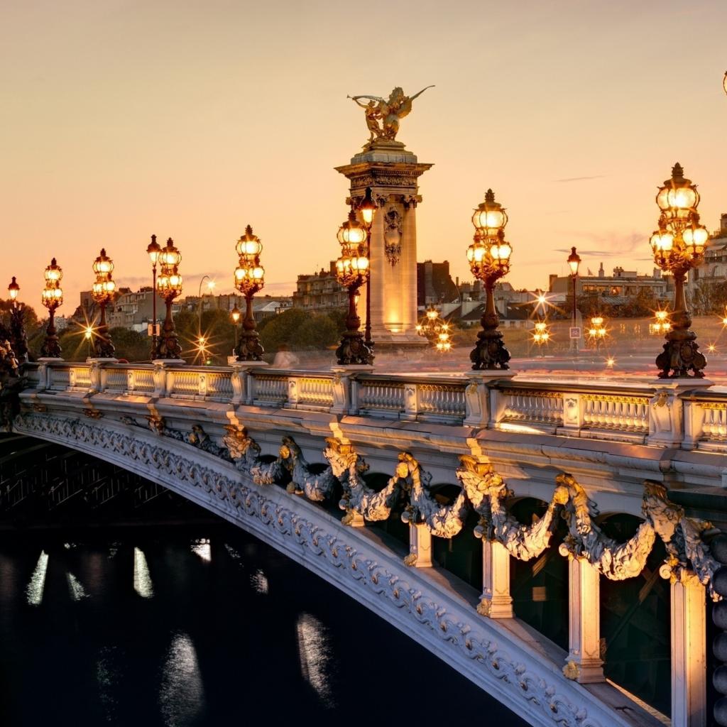 Wallpaper Arched bridge of Alexander 3 in lanterns, the city of Paris. France