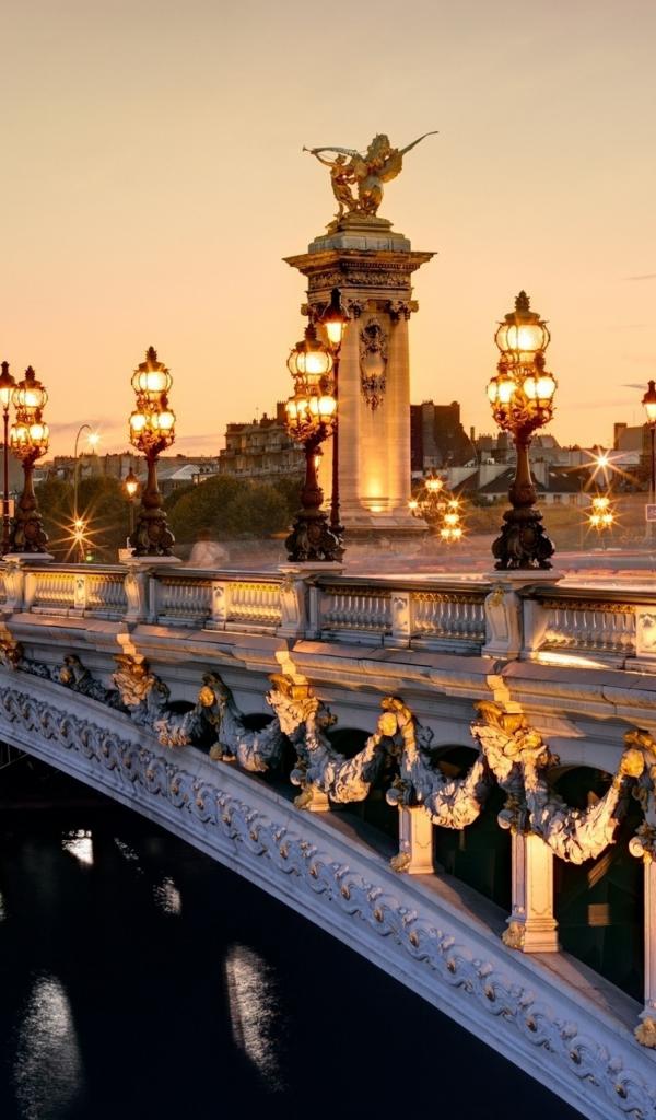 Wallpaper Arched bridge of Alexander 3 in lanterns, the city of Paris. France