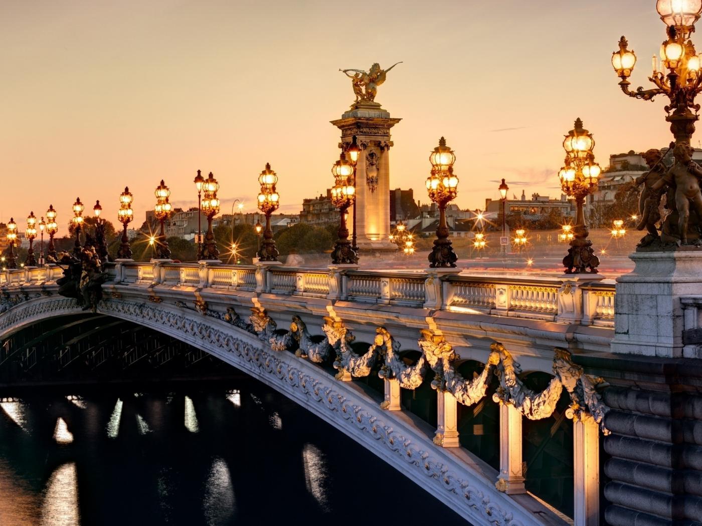 Wallpaper Arched bridge of Alexander 3 in lanterns, the city of Paris. France