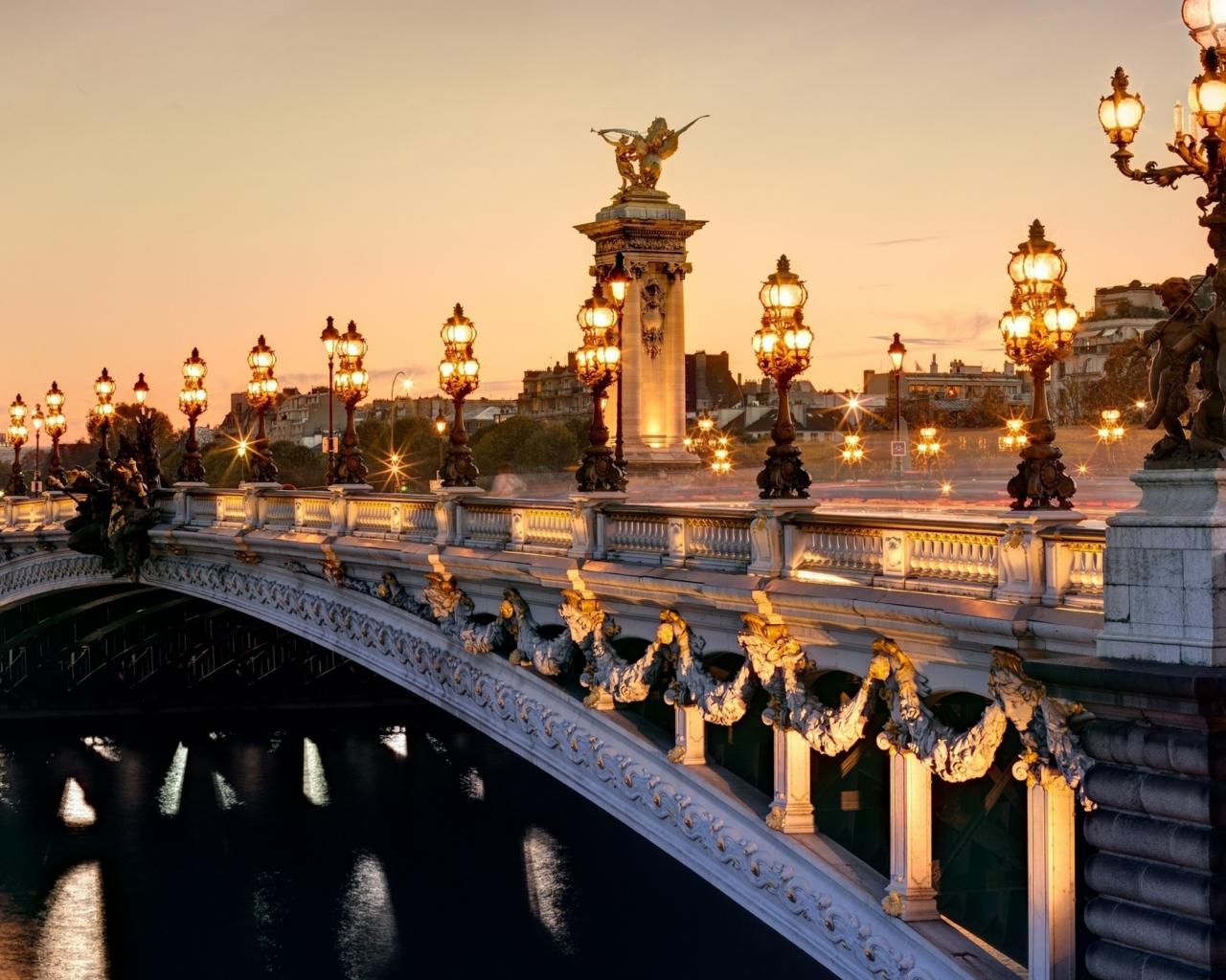 Wallpaper Arched bridge of Alexander 3 in lanterns, the city of Paris. France