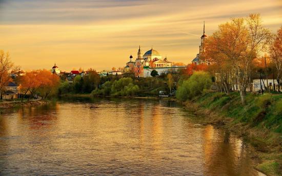 Wallpaper Sunset over the river, Torzhok. Tver Region Russia