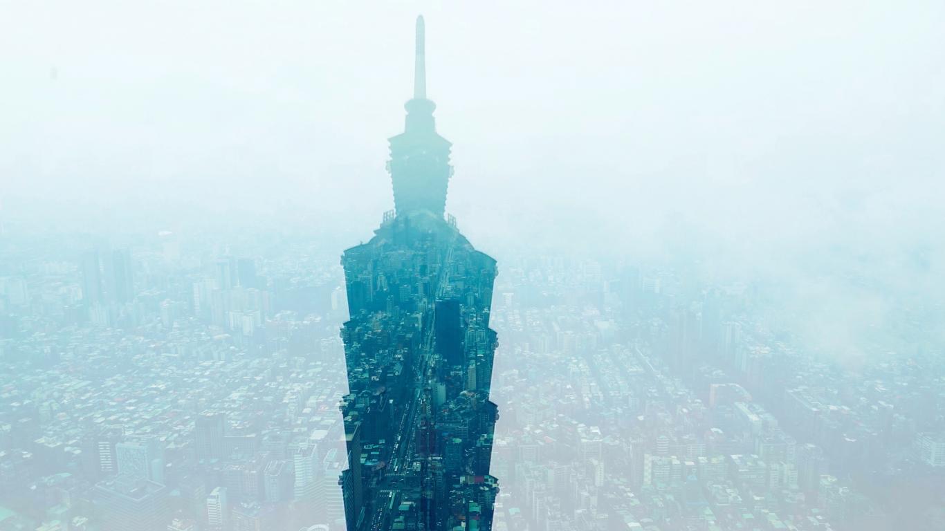 Wallpaper Silhouette of a skyscraper on a city background