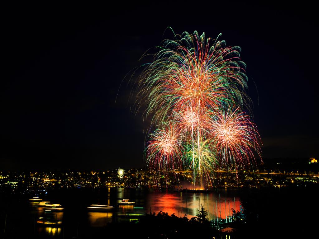 Wallpaper Beautiful festive fireworks over the city