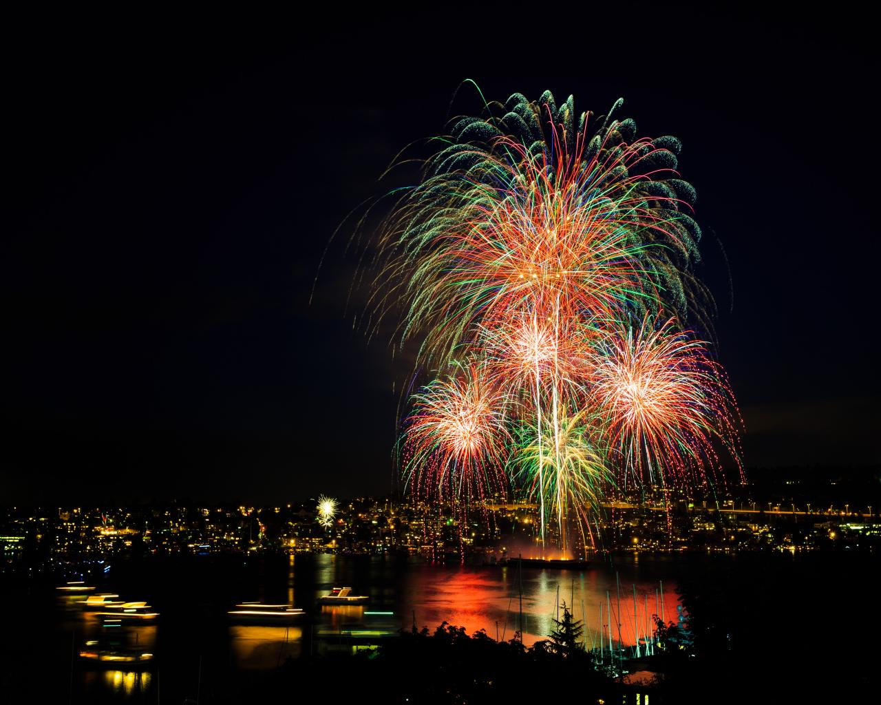 Wallpaper Beautiful festive fireworks over the city