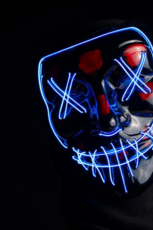 Wallpaper Neon Anonymous mask on black background