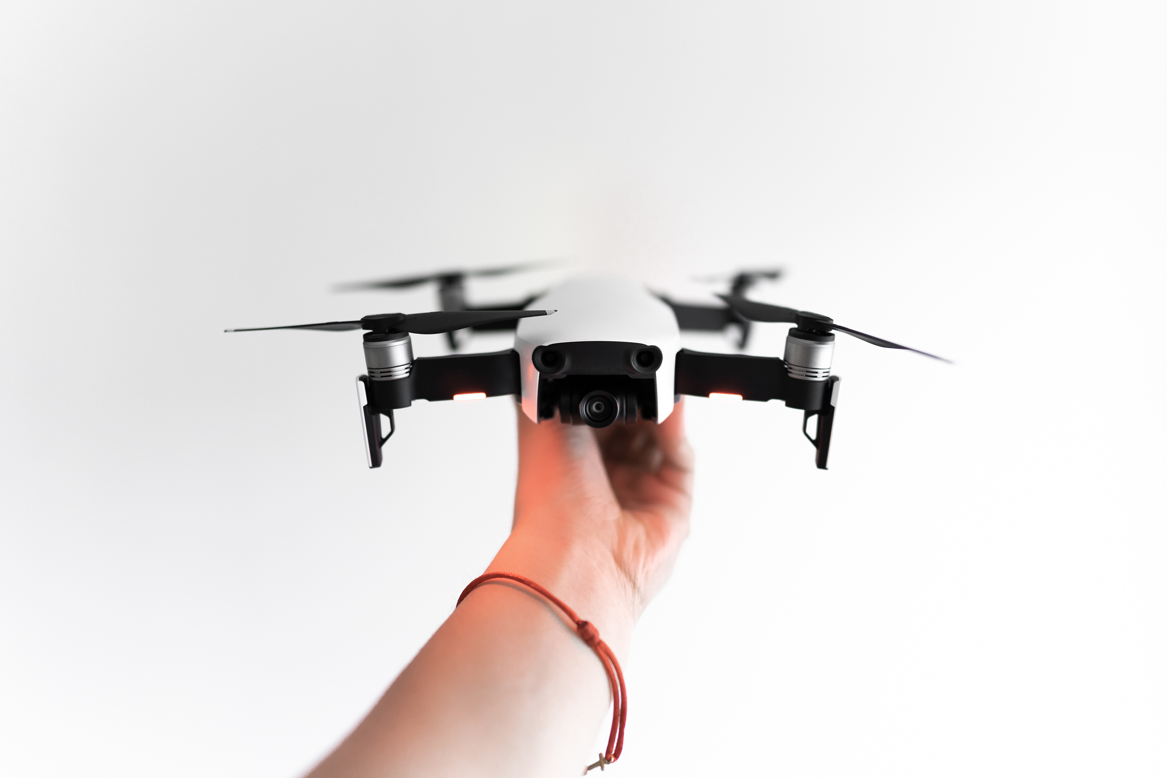 Wallpaper White quadrocopter in hand on a white background