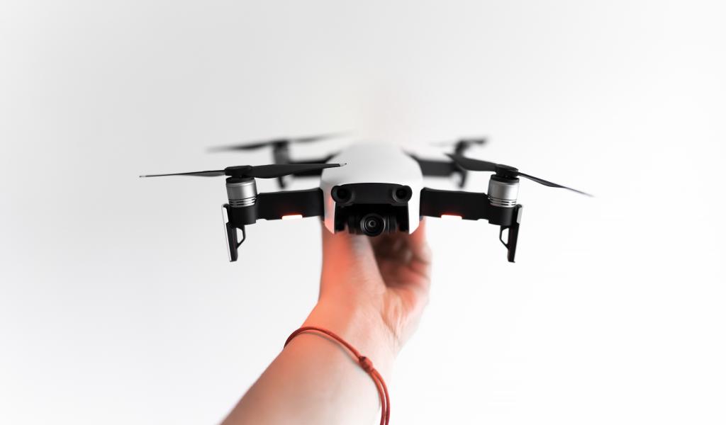Wallpaper White quadrocopter in hand on a white background