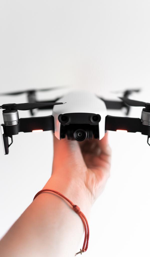 Wallpaper White quadrocopter in hand on a white background