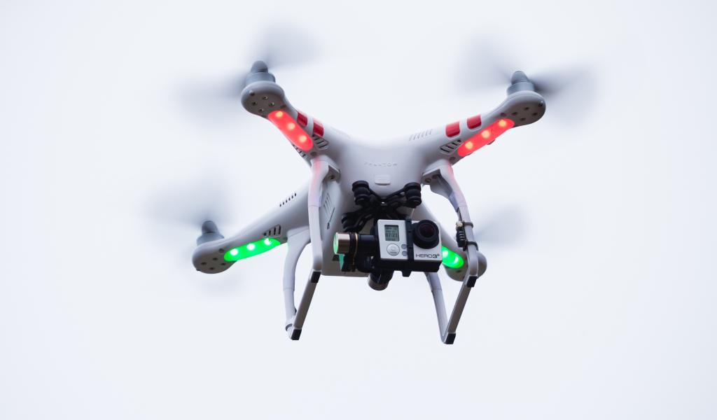 Wallpaper Quadrocopter with a video camera on a white background