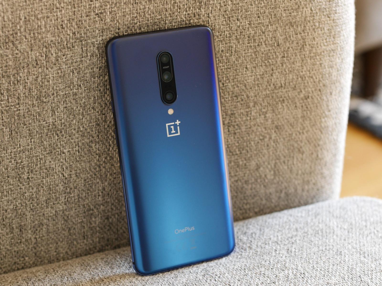 Wallpaper Blue ONEPLUS 7 smartphone on the couch