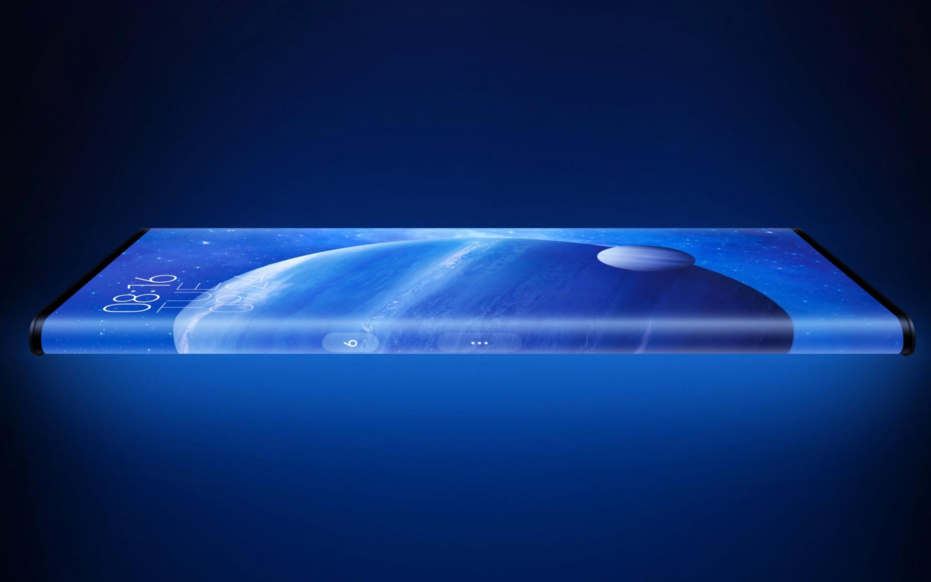 Wallpaper Slim smartphone Xiaomi Mi Mix Alpha on a blue background
