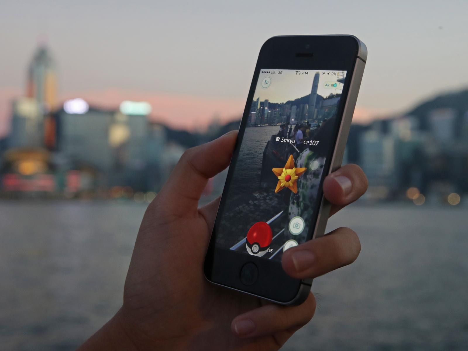 Wallpaper Guy catches Pokemon on a smartphone