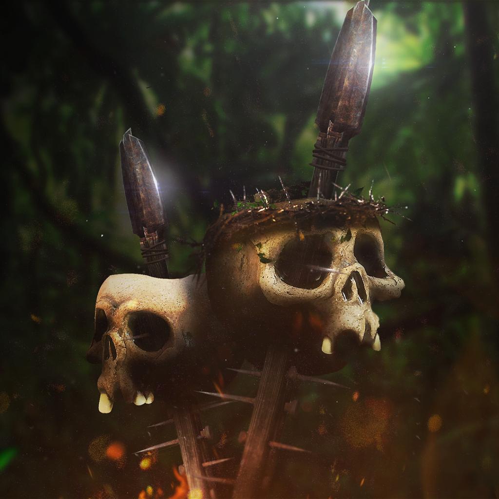 Wallpaper The skulls on spears in the jungle