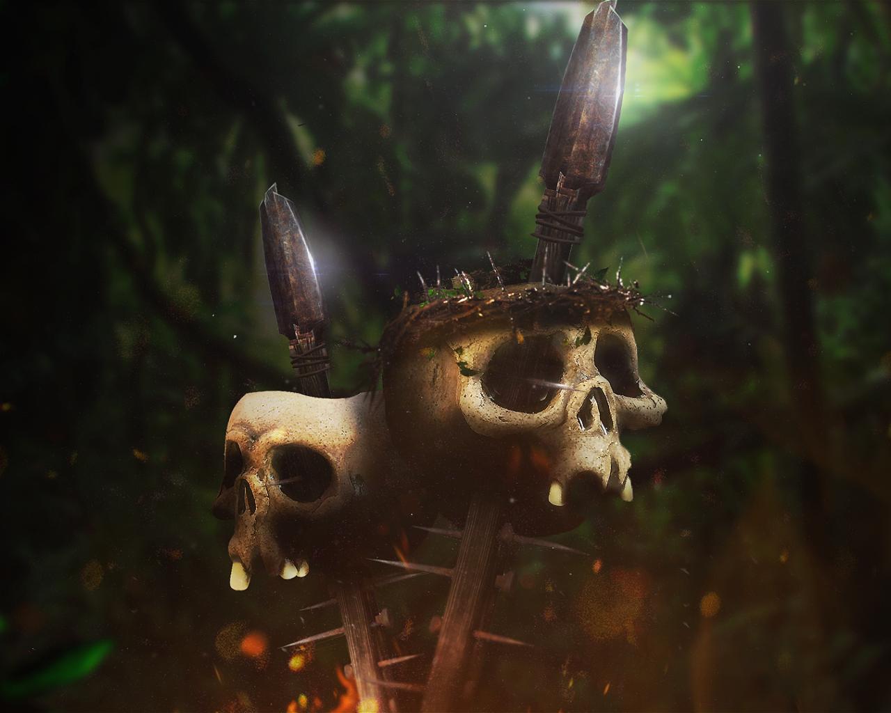 Wallpaper The skulls on spears in the jungle