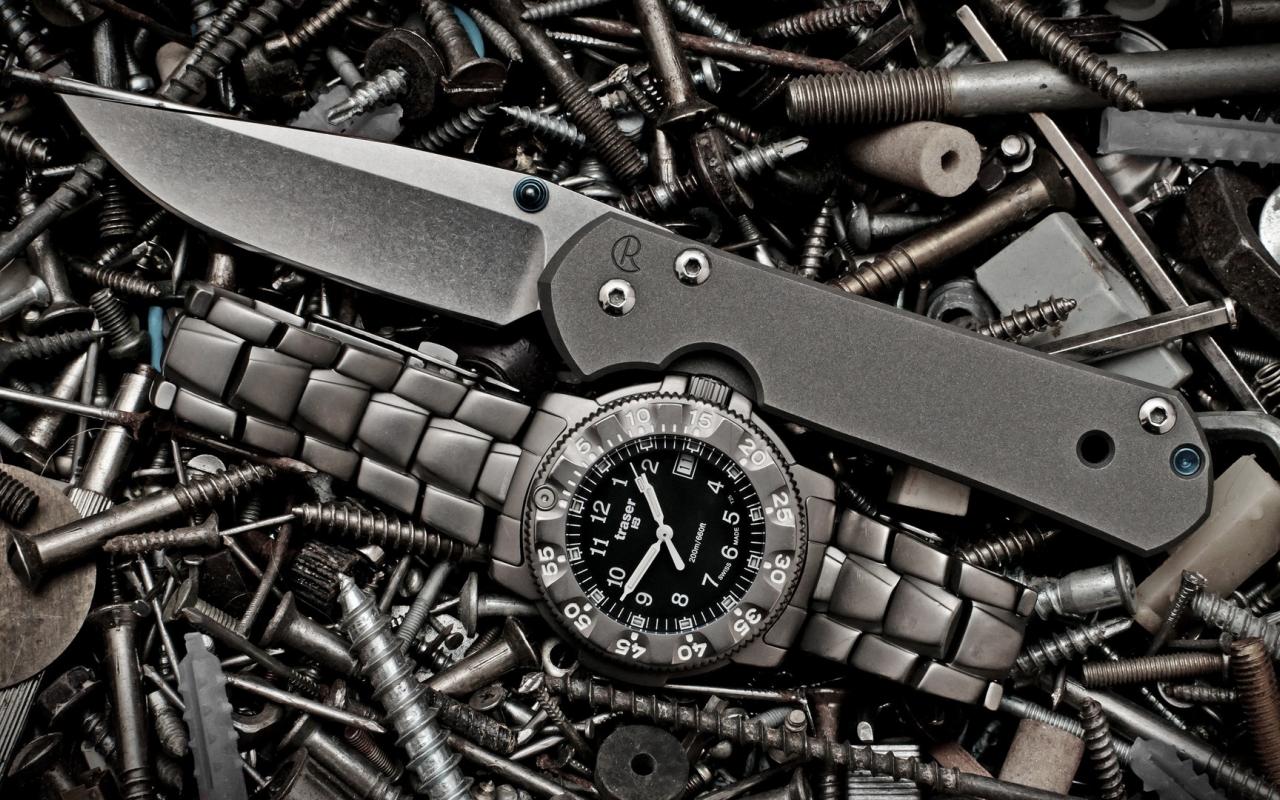 Wallpaper Folding Knife, expensive watches and screws