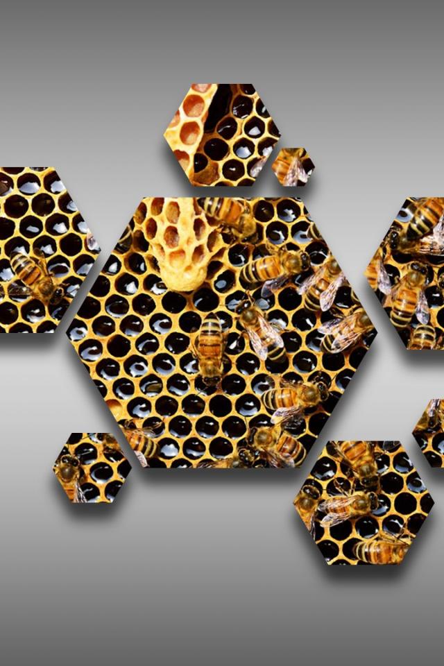 Wallpaper The hexagonal honeycomb with bees on a gray background