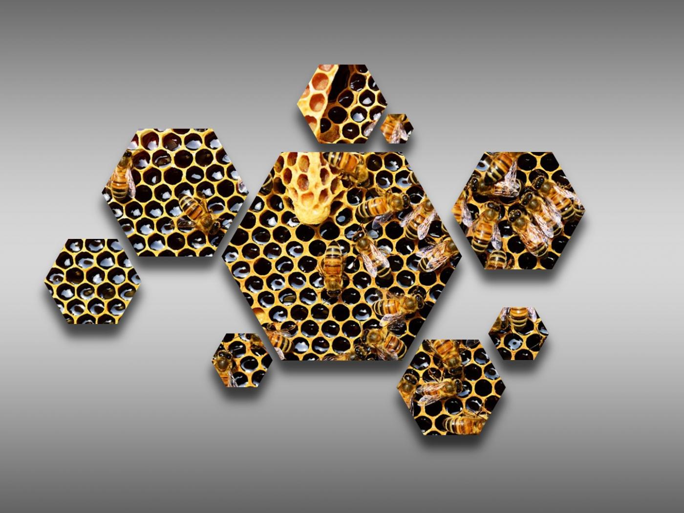 Wallpaper The hexagonal honeycomb with bees on a gray background