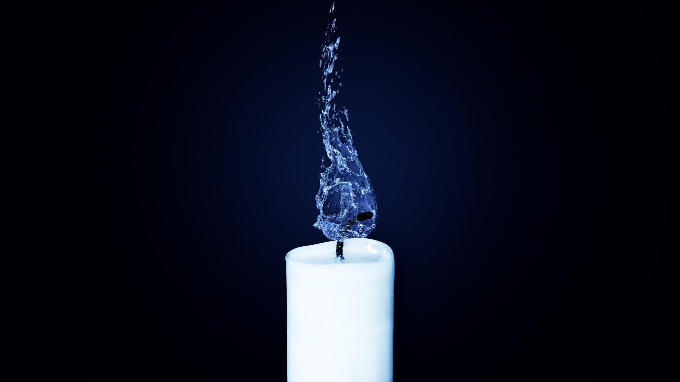 Wallpaper White candle burns with a flame of blue water