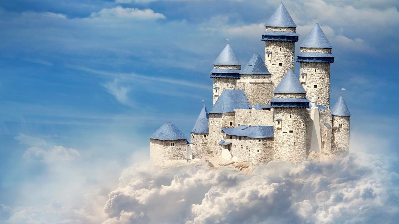 Wallpaper Castle on white clouds in a blue sky