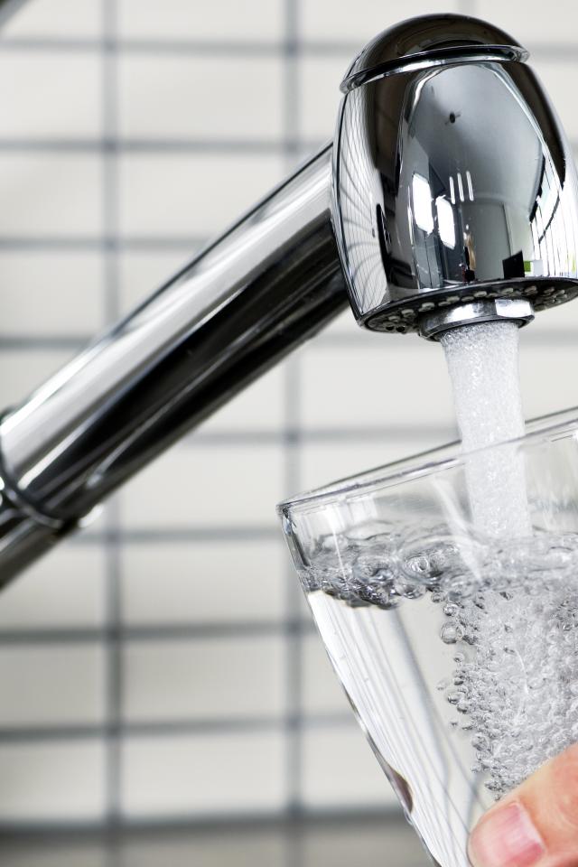 Wallpaper The girl drinks water from a glass on the background of the sea
