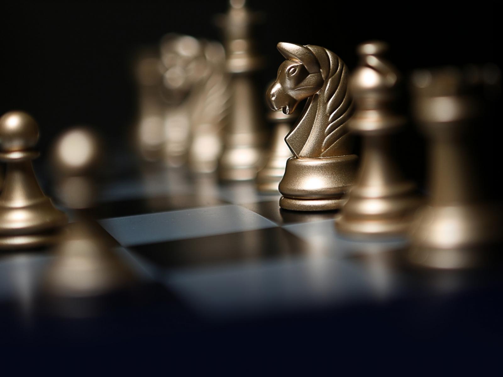 Wallpaper Gold chess pieces on a chessboard