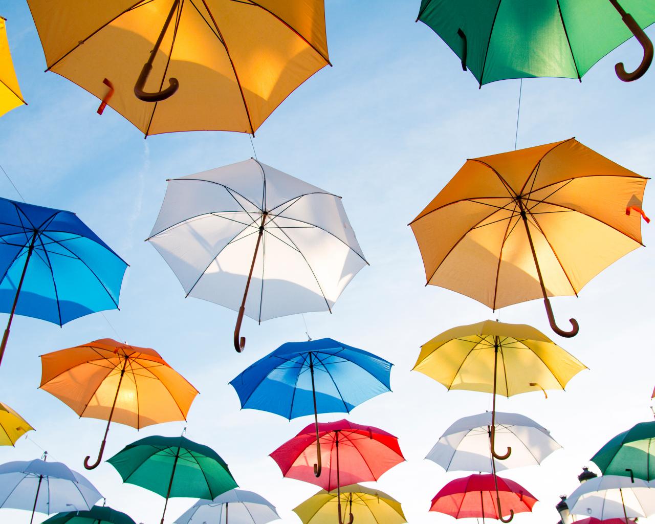 Wallpaper Multicolored umbrellas in the blue sky