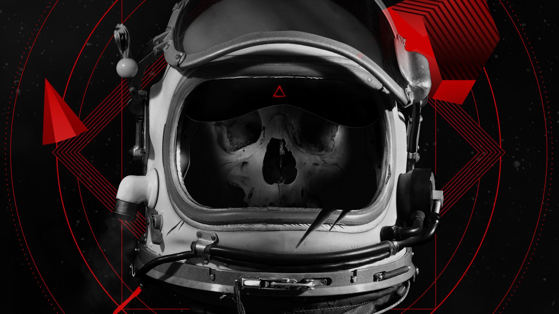 Wallpaper The human skull in the astronaut`s helmet