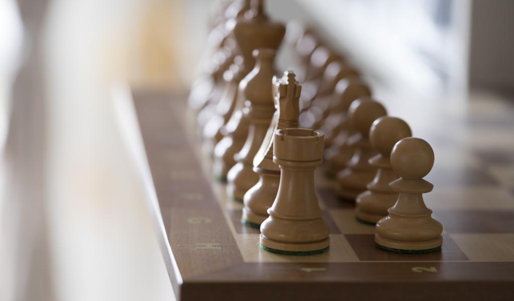 Wallpaper Wooden chess pieces on a chessboard