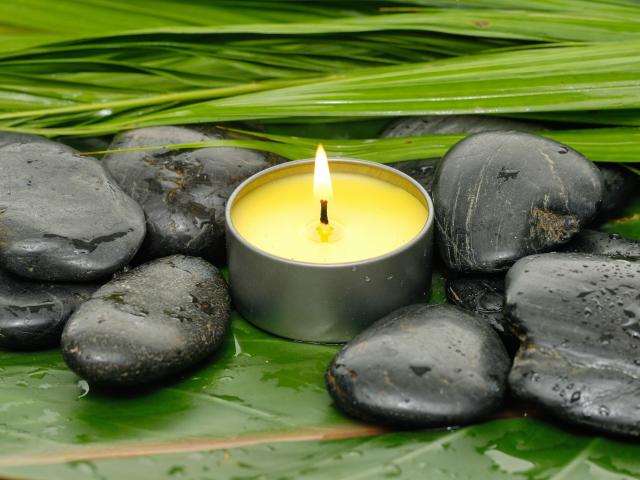 Wallpaper Lighted candle and black stones for SPA