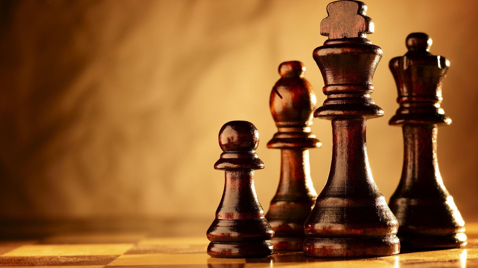 Wallpaper Wooden chess pieces on a chessboard