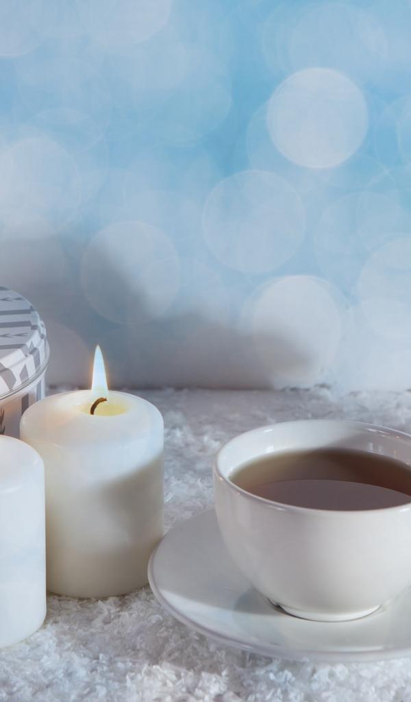 Wallpaper Candles, a cup of tea and the figure of a horse on a table