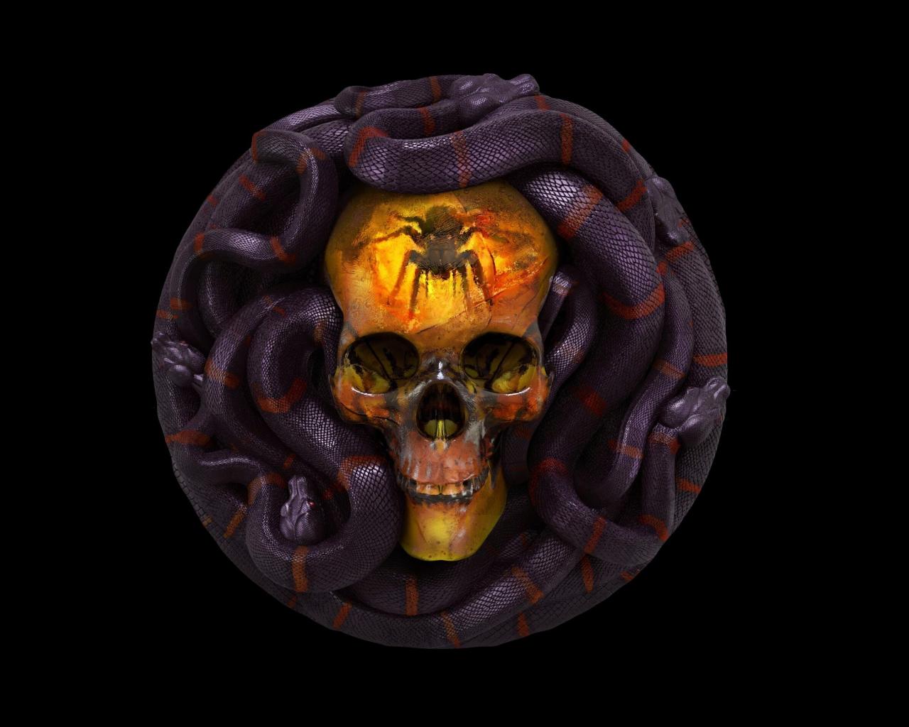 Wallpaper Skull with snakes on a black background